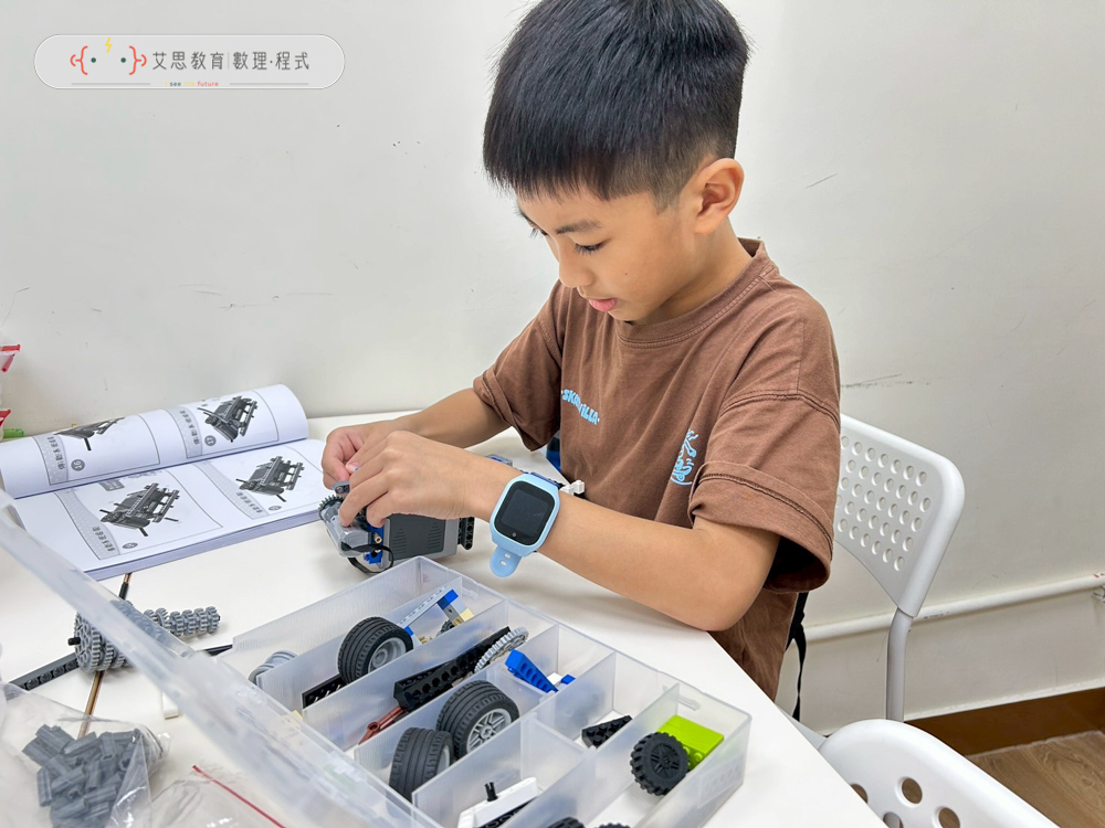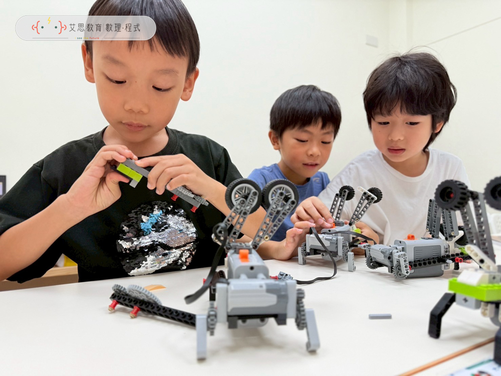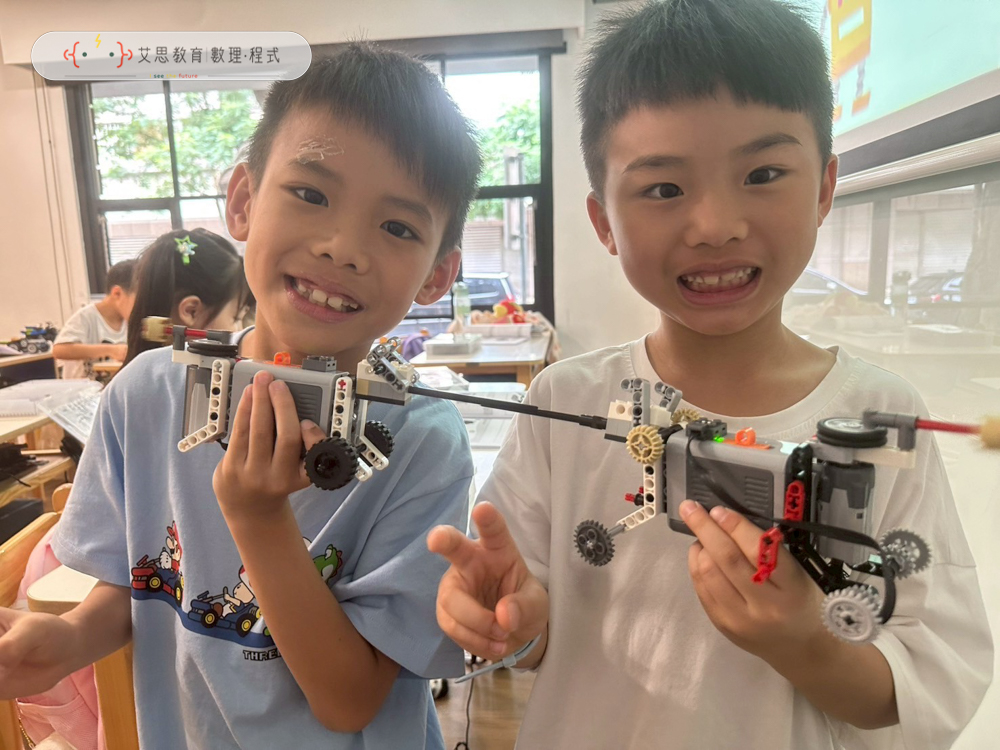 以中低年級為主我們以純SPM為教材,先讓孩子培養馬達動能、齒輪結構等機械原理,讓孩子們邊玩邊學,顛覆對傳統樂高的認知。中高年級開始會結合EV3程式主機、光感、超音波感測器,透過簡易的程式撰寫,讓作品更加智能且豐富,朝AI機器人之路發展。