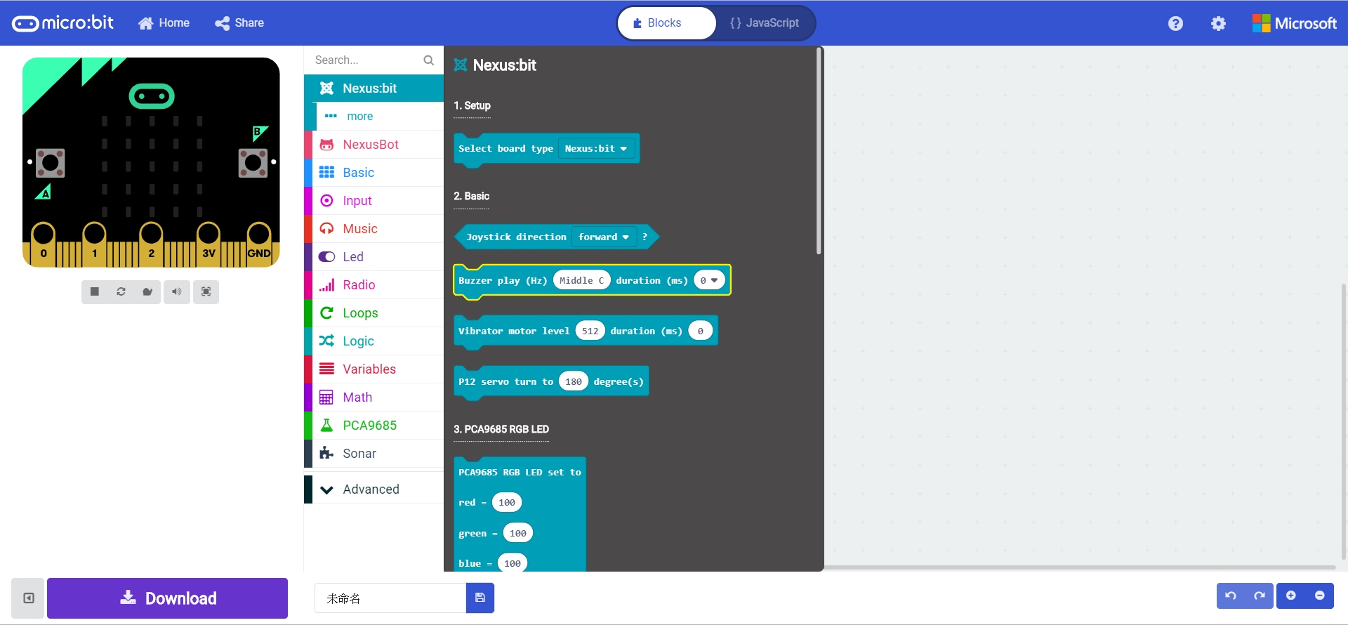 Microsoft's MakeCode graphic editor is already powerful enough, but it also allows users to develop their own custom extension to re-packaging complex functions into simple blocks. Just click and drag those blocks and kids can do coding on them! This is why TCEA designed an extension specifically for Nexus:bit. (You can still control your Nexus:bit by using standard MakeCode blocks, not limited by our custom extension.)