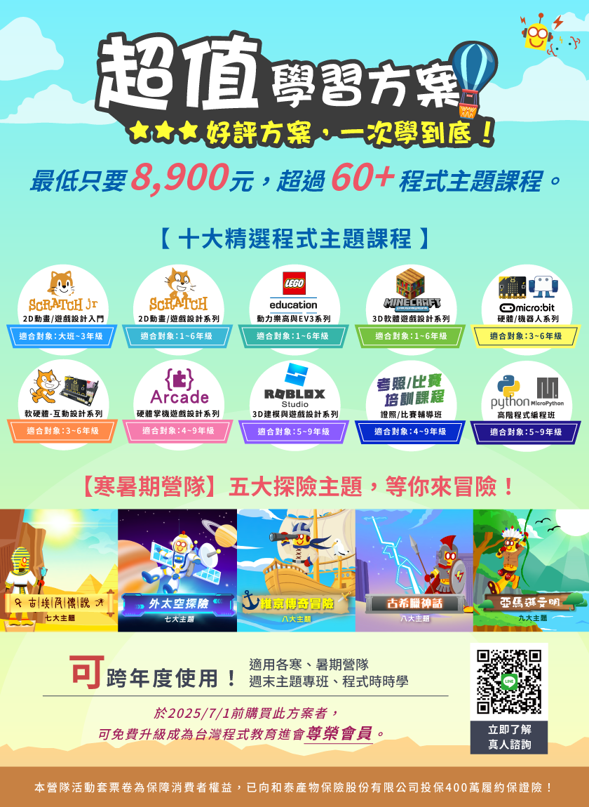 3.建議加選「時時學程式關卡挑戰」,於營隊下課後鞏固程式觀念應用。